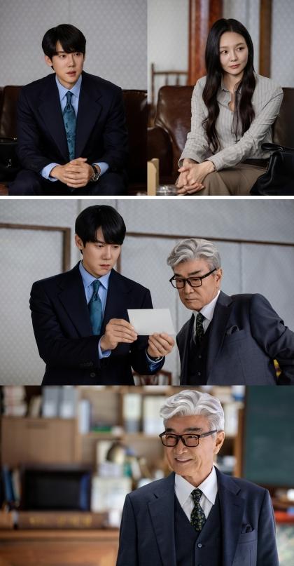 이 가운데 오늘(9일) 공개된 스틸컷에는 두 변호사가 신이랑 법률사무소에서 포착돼 이목을 집중시킨다. 대형 로펌 ‘태백’을 나온 한나현이 신이랑의 파트너로 새 출발한 예감을 들게 하는 장면이다. 여기에 두 사람이 함께 바라보고 있는 사람이 눈길을 끈다. 다름 아닌 이덕화가 중후한 수트 차림으로 범접할 수 없는 아우라를 뿜어내고 있기 때문. 신이랑과 함께 의문의 사진을 뚫어지게 응시하는 그가 과연 산 사람으로 사건을 의뢰하러 온 것인지, 아니면 신이랑의 눈에만 보이는 새로운 망자인지에 대한 궁금증이 폭발하고 있다.